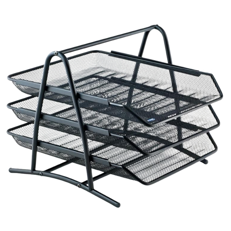 Mas markasının kaliteli üretimiyle sunulan 3’lü metal file evrak rafı, masaüstü belgelerinizi düzenli tutmanızı sağlar. Her bir katmanı farklı belge türlerini ayırmak için kullanılabilir. Dayanıklı metal yapısı uzun ömürlü kullanım sunarken, siyah file tasarımı ofis estetiğine şıklık katar.